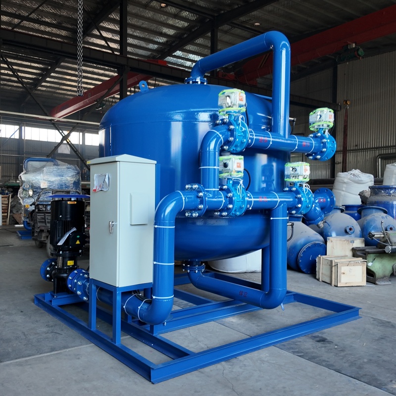 本设备采用优质石英砂滤料作为过滤层,利用深层截留、吸附原理,可有效拦截水中泥沙、铁锈、悬浮颗粒物等杂质,初步净化水质,减轻后续精密水处理设备的工作压力。设备结构设计合理,纳污能力强,水流通过阻力小,整体运行平稳,可长期连续稳定作业。